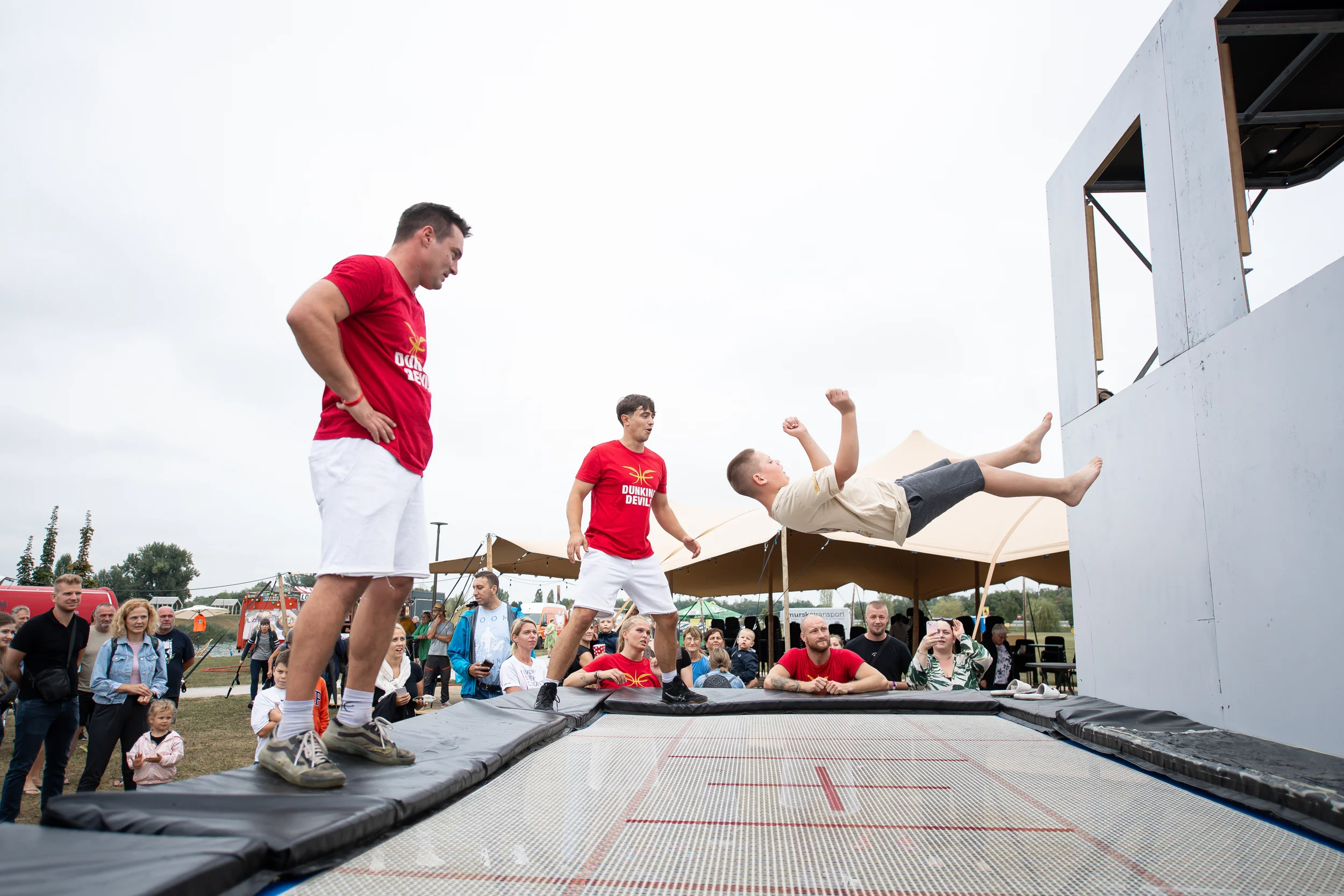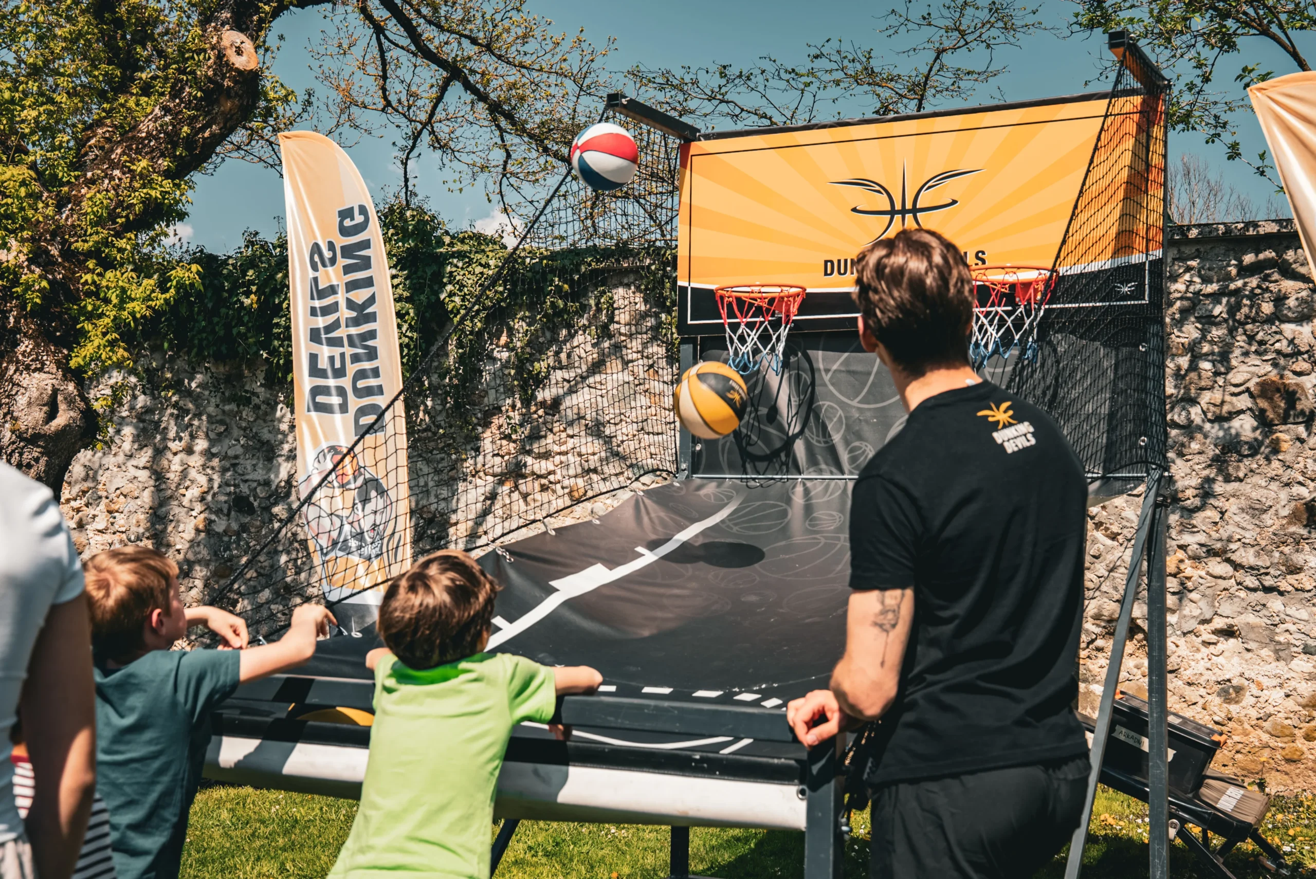 Vsaka aktivnost poteka pod nadzorom izkušenih Dunking Devils akrobatov, ki poskrbijo za varnost in dobro energijo. Po želji vključimo tudi animacijo, mini tekmovanja ali izzive, ki otroke dodatno povežejo in navdušijo. Cilj delavnic je ustvariti aktivno okolje, kjer otroci uživajo, se gibajo in premikajo svoje meje na zabaven način.